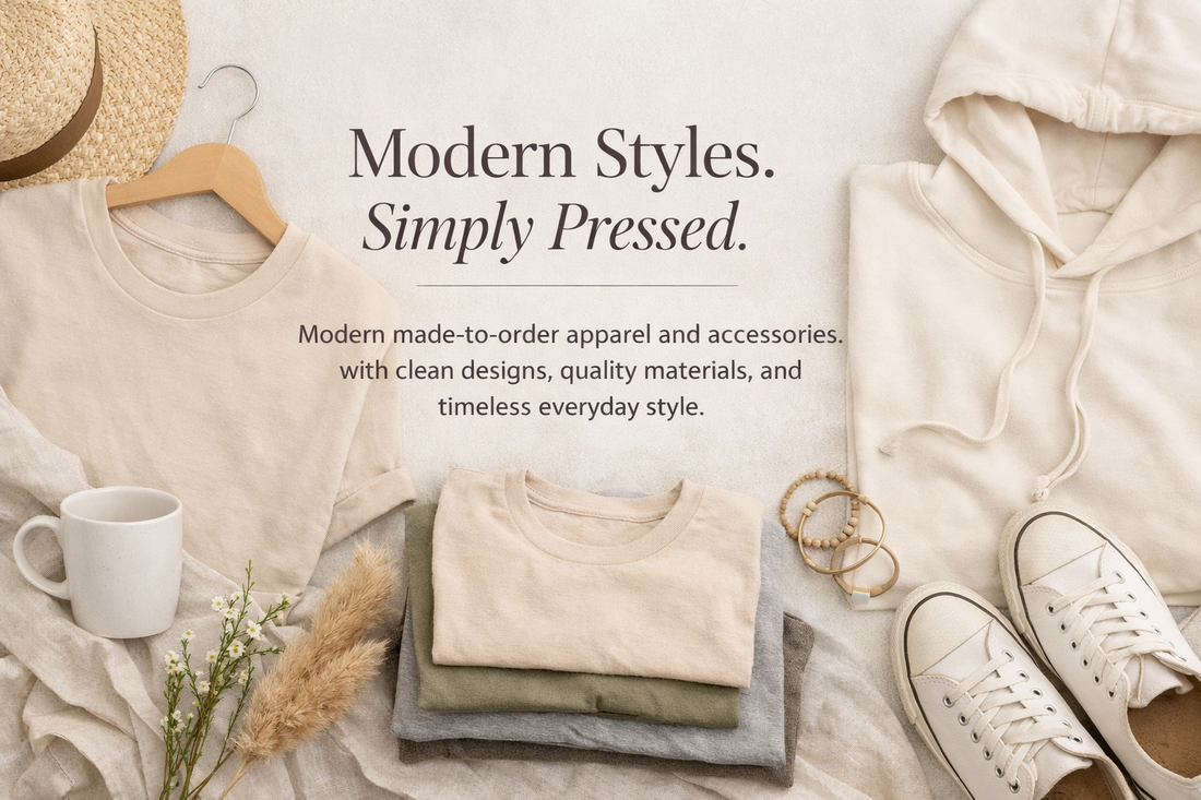 Modern made-to-order apparel and accessories with clean designs, quality materials, and timeless everyday style.